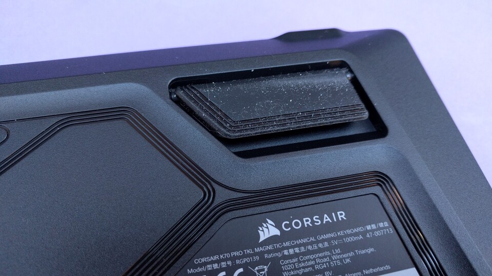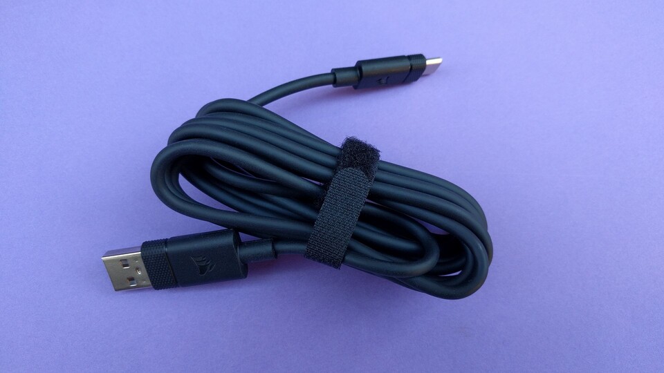 Die Corsair K70 Pro TKL hat bloß glatte ABS-Tastenkappen und ein nicht ummanteltes Kabel. Bei dem Preis wäre PBT-Double-Shot und ein wenig Stoff ums Kabel sicher drin gewesen.