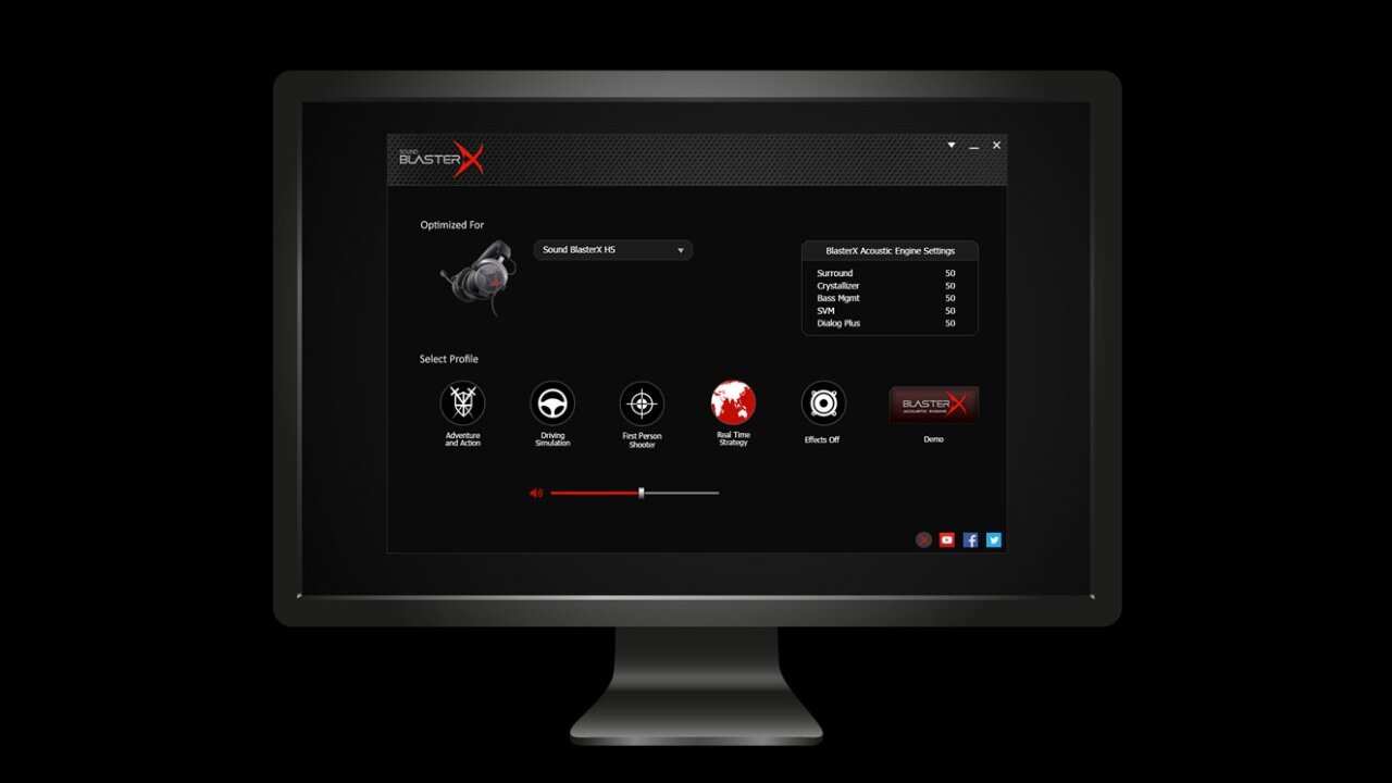 Mit verschiedenen von Profis erstellten Sound-Profilen, die für beliebte Spiele angeboten werden, klingen umherfliegende Projektile oder das Brüllen eines Monsters noch überzeugender im Raum positioniert und Schrittgeräusche werden akustisch stärker herausgestellt. Die optionale Software gehört nicht zum Lieferumfang des Headsets, kann aber direkt bei Creative heruntergeladen werden und setzt nur einen sehr moderaten PC voraus. Ein Core 2 Duo oder AMD-Prozessor mit 2,8 GHz, mindestens Windows 7 als Betriebssystem, 1,0 GByte Arbeitsspeicher und 600 MByte freiem Speicherplatz reichen aus – kein Problem für halbwegs aktuelle Spiele-PCs.