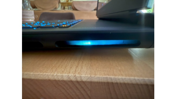 Tja und dann wäre da noch die RGB-Beleuchtung. Ich bin offen gestanden kein Freund davon, bei meinen privat genutzten Laptops deaktiviere ich das Bling Bling immer direkt nach der Inbetriebnahme. Gewöhnlich erfolgt die Integration in Form von RGB-Leisten, die mehr oder weniger lieblos ans Gehäuse geklatscht werden.