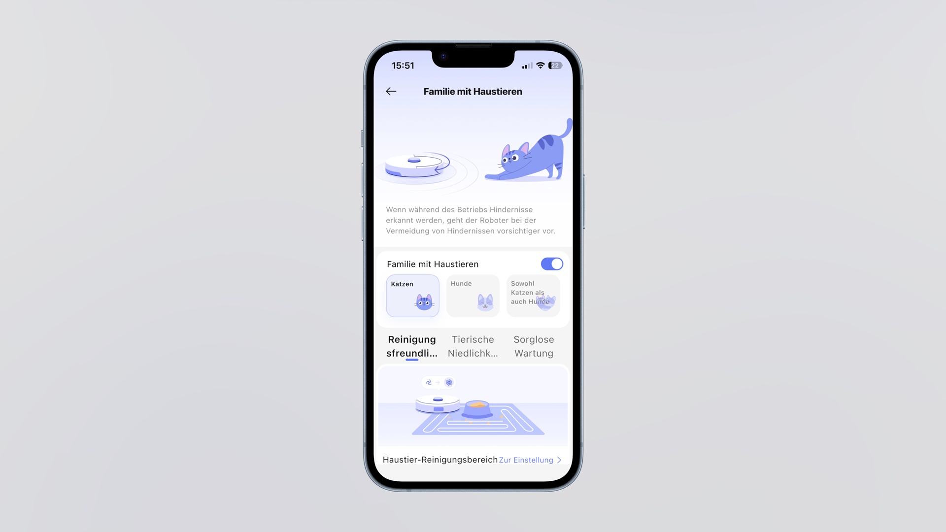 Der Flow 2 bietet in der App dedizierte Haustier- und Kinder-Modi, die bestimmte Zonen intensiver oder häufiger reinigen.