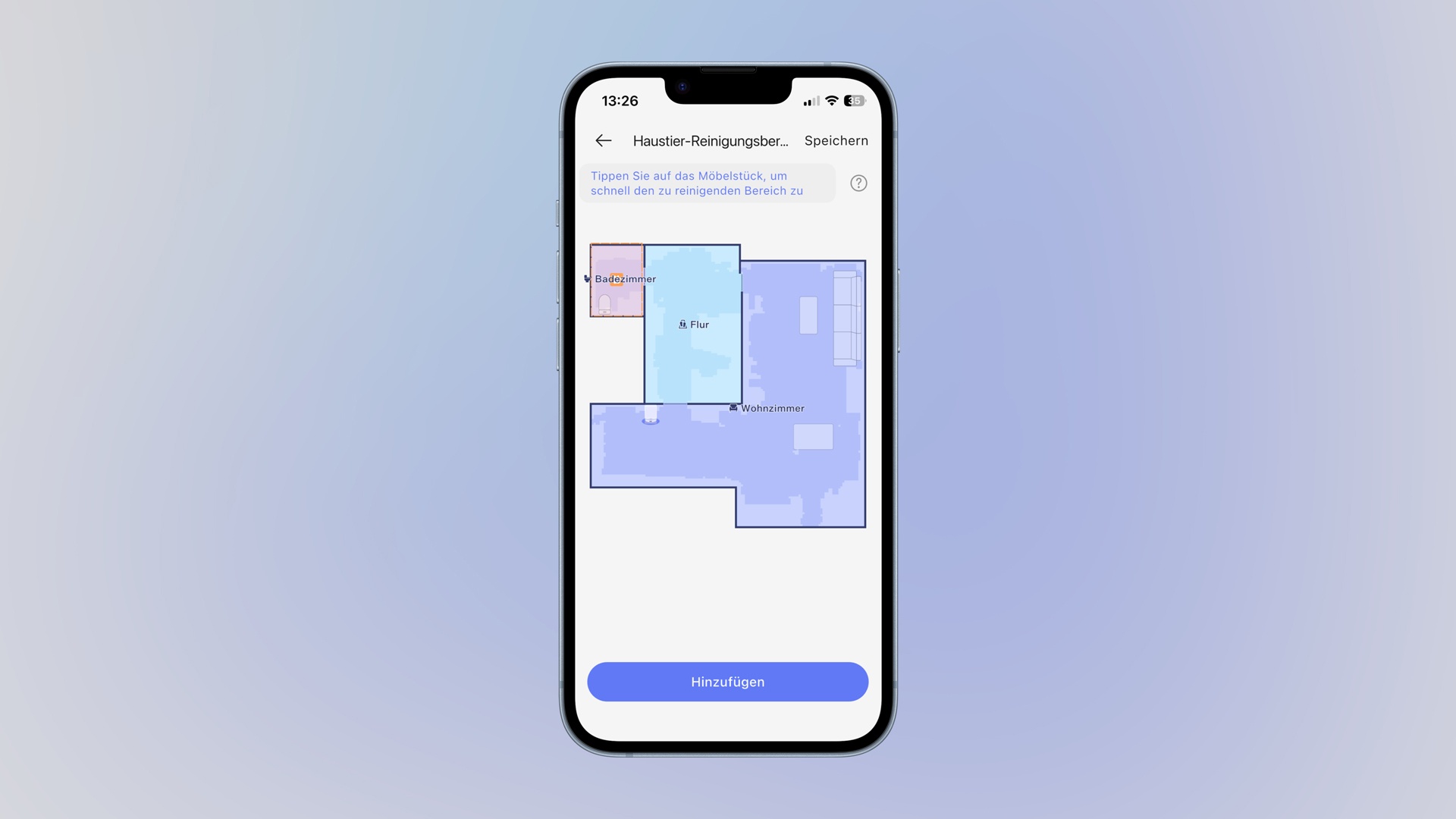 Testumgebung: 38 Quadratmeter Reinigungsfläche (von insgesamt 66 Quadratmeter).