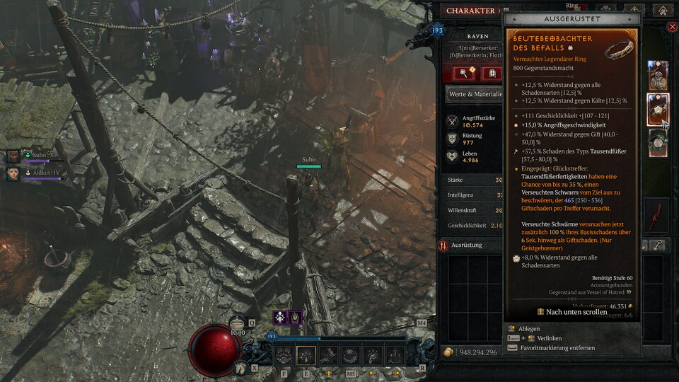 Stachel, Gifthaut und Berührung des Todes machen euch zu einer tödlichen Giftschleuder, besonders wenn ihr früh in den Besitz der Aspekte Pestilenz und Befall kommt. Sobald ihr euch das Härten eurer Ausrüstung leisten könnt, investiert ihr in mehr Schaden für Verseuchter Schwarm und die Chance, mit Stachel mehrfach zu treffen.