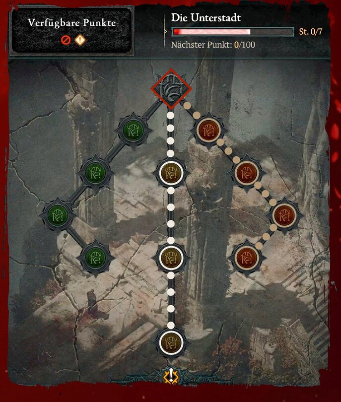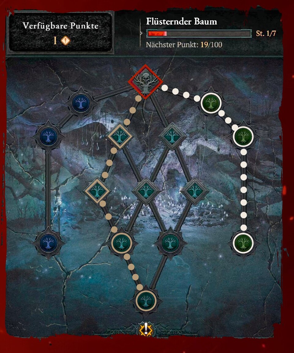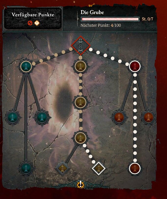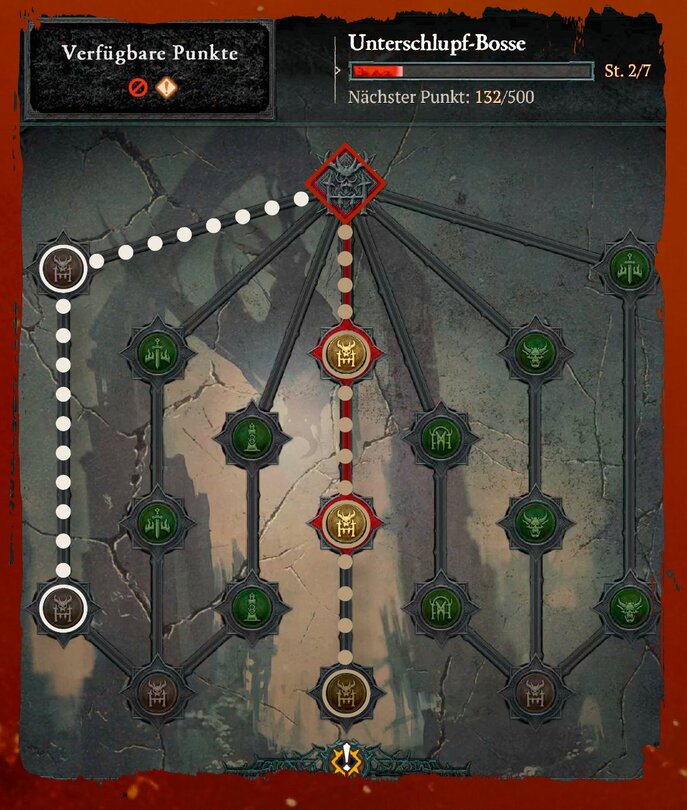 Eine kleine Besonderheit bildet der Talentbaum für Unterschlupf-Bosse. Hier könnt ihr ausgewählte Bosse oder ihre Lakaien auch zufällig bei anderen Aktivitäten wie Höllenfluten auftauchen lassen und so ihre Beute ohne Zugangsschlüssel abstauben. Wählt hier am besten genau die Bosse, die Aus­rüstung für euer Build fallen lassen.