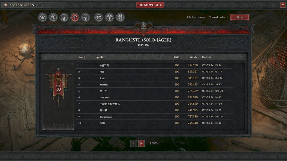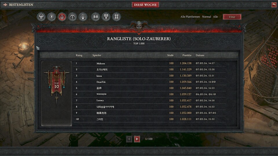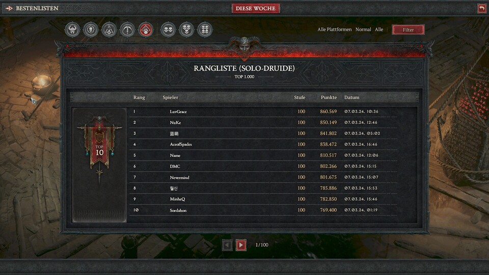 Wie erfolgreich ihr letztlich in der Rangliste seid, hängt natürlich auch viel mit euren eigenen kreativen Ideen zusammen und wie gut ihr den Dungeon verinnerlicht habt. Bedenkt außerdem, dass der Dungeon jede Woche wechselt. Es kann also gut sein, dass nächste Woche schon wieder ganz andere Klassen und Builds an der Spitze stehen.
