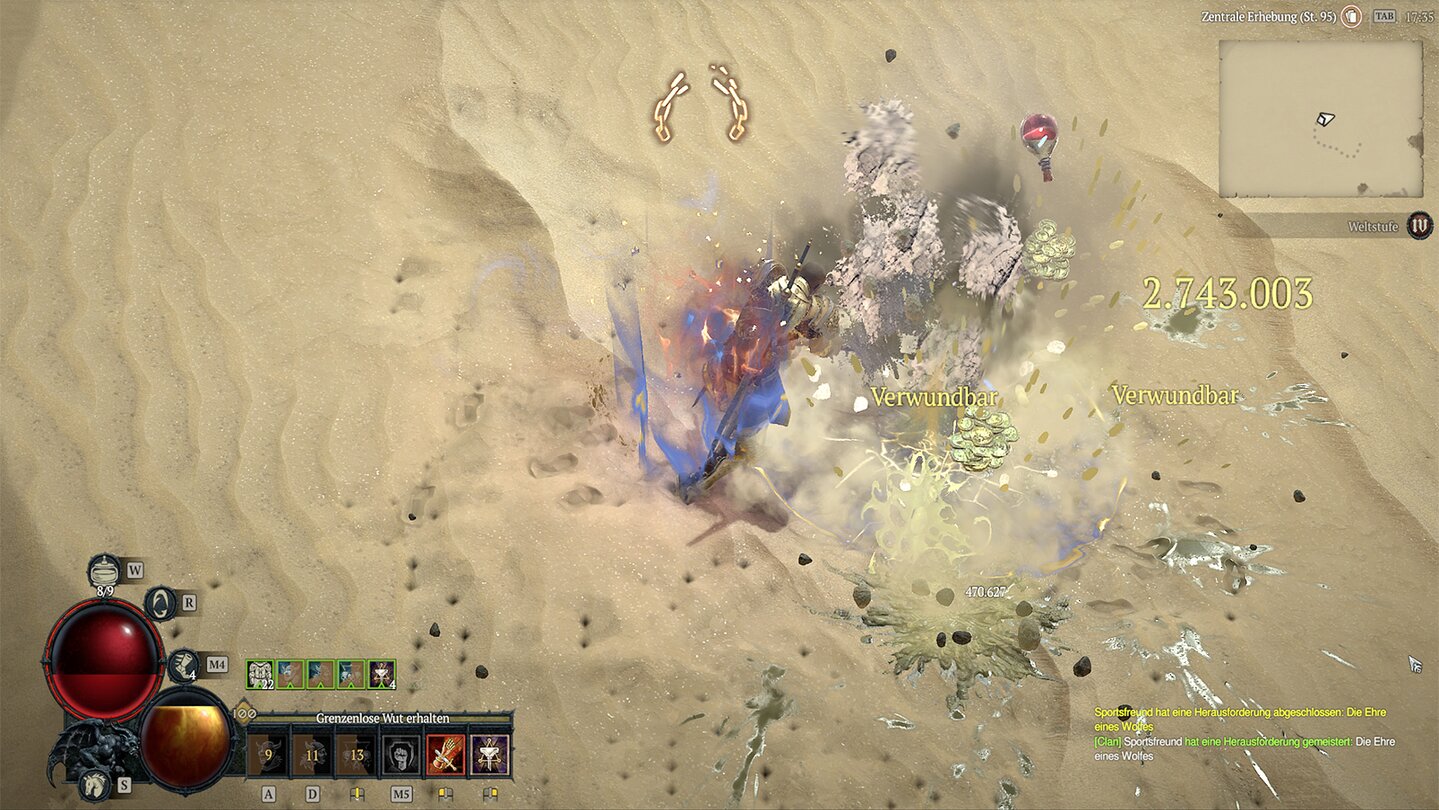 Damit vergiftet ihr nämlich sowieso alle Gegner und der hier hinzukommende Schadensbonus skaliert mit euren bestehenden Multiplikatoren. Die am Gegenstand angezeigten 3.000 Schaden können also auch Sphären jenseits einer Million tatsächlichen Schadens erreichen.
