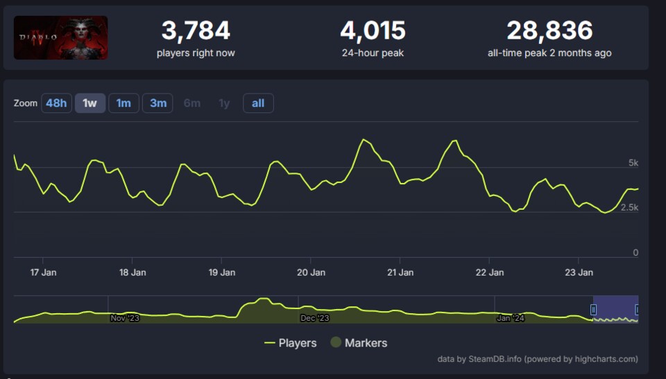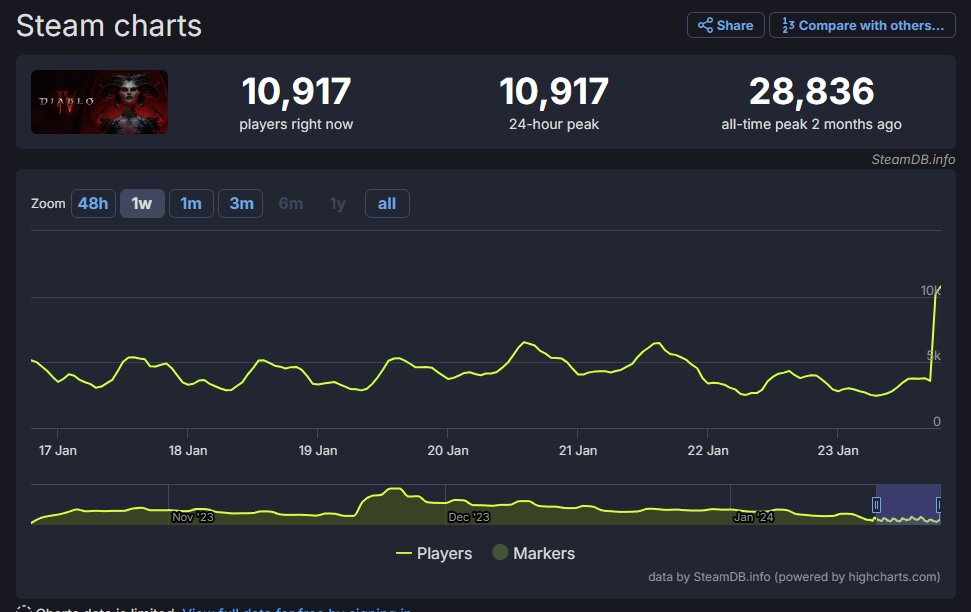 Interessante Nebenbeobachtung: Einige Leute scheinen sich Diablo 4 tatsächlich auf beiden Plattformen zugelegt zu haben. Also auf Steam und im Battle.net.