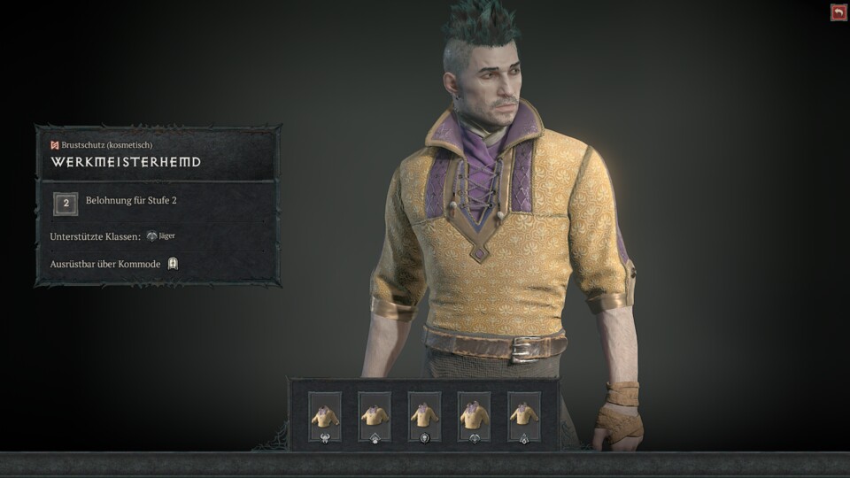 Ihr könnt auch Geld für den Pass ausgeben, überlegt euch das bei den Preisen aber sehr gut. Kostenlos gibt es beispielsweise dieses schmucke Hemd - falls ihr mit eurem Diablo-Charakter eine Dinnerparty plant: