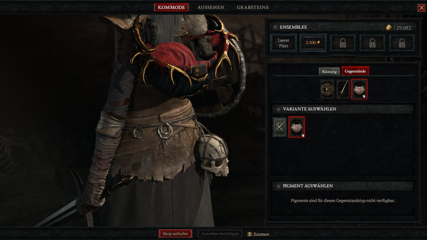 - Wechselt vom Tab »Rüstung« zu »Gegenstände«. Dort könnt ihr jetzt die Beta-Belohnung Wolfsbündel finden und via Klick ausrüsten.