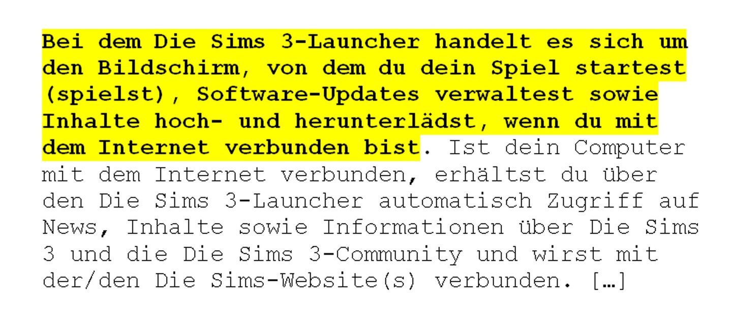 Wenn Sie keinen Wert auf die Community-Inhalte legen und Sie der Launcher stört, dann können Sie ihn auch überspringen. Suchen Sie dazu in Ihrem Sims-Installationsverzeichnis (Standard: C:\Programme\Electronis Arts\Die Sims 3) im Unterordner \Game\bin die Datei »TS3.exe« und legen Sie zu dieser Datei eine Verknüpfung auf dem Desktop an. Mit dieser Verknüpfung starten Sie das Spiel direkt.