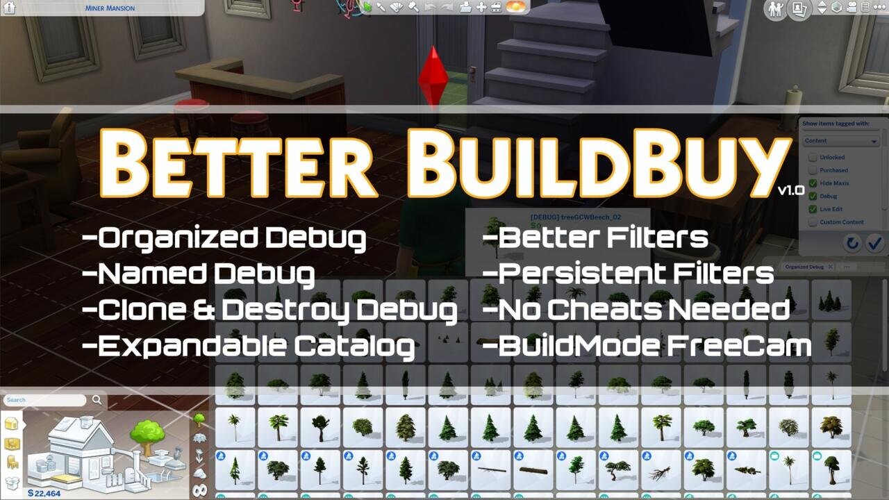 Die Mod Better BuildBuy schaltet euch direkt sämtliche Bonus-Objekte im Katalog frei und lässt sie euch ohne Probleme nutzen. Ihr könnt außerdem Filter einsetzen, Objekte pinnen oder sogar die Lichtverhältnisse beim Bauen anpassen.