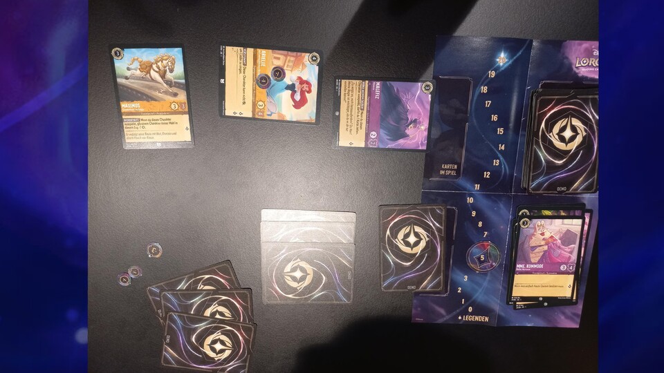 - Lorcana atmet Disney: Während uns das Kartenspiel langsam erklärt wird und wir auch hinter die Kulissen blicken dürfen, wird eins schnell klar: Lorcana ist nicht einfach nur ein Kartenspiel, auf das Disney groß seinen Namen geklatscht hat. Die Game Designer haben sich hier wirklich Gedanken gemacht, wie man den Geist des Kult-Medienkonzerns im Sammelkartenspiel einfangen könnte. Nicht nur die Lore von Lorcana ist Disney-typisch magisch. Auch das Gameplay selbst greift immer wieder besondere Eigenschaften der Charaktere auf und übersetzt sie in Fähigkeiten oder Effekte. Natürlich dürfen auch wie bei jedem guten Disney-Film die Lieder nicht fehlen - das sind spezielle Aktions-Karten im Spiel. Disney-Fans dürften sich hier also sehr wohl fühlen.