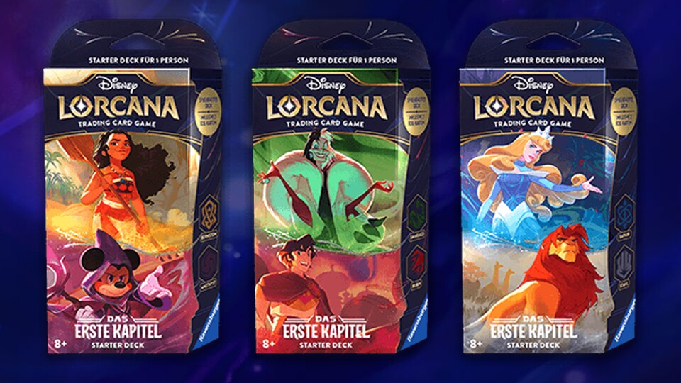 Disney Lorcana startet sein erstes Kapitel im Herbst mit drei Starter-Decks, Booster Packs, Geschenk-Sets, Spielmatten, Alben und noch viel mehr - Disney und Ravensburger halten sich hier also nicht zurück und wagen einen großen Schritt in die Welt der Trading Card Games.