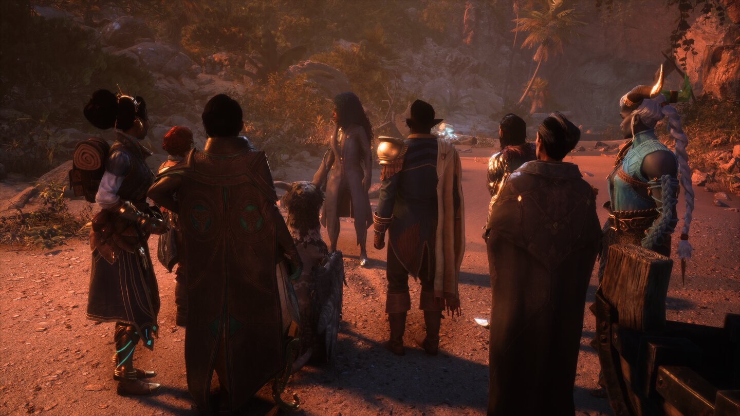 Auch in Der Schreckenswolf erhebt sich, der letzten Mission des Spiels, wartet eine wichtige Entscheidung auf euch. Ein Mitglied der Gruppe muss Rook und Mitstreitern bei der anstehenden Kletterpartie weiter die Ranke hinauf den Rücken freihalten. Die überlebende Bellara macht sich alleine auf den Weg, um Solas‘ Kampf gegen den Erzdämon zu unterstützen und steht als Gefährtin nicht zur Verfügung.