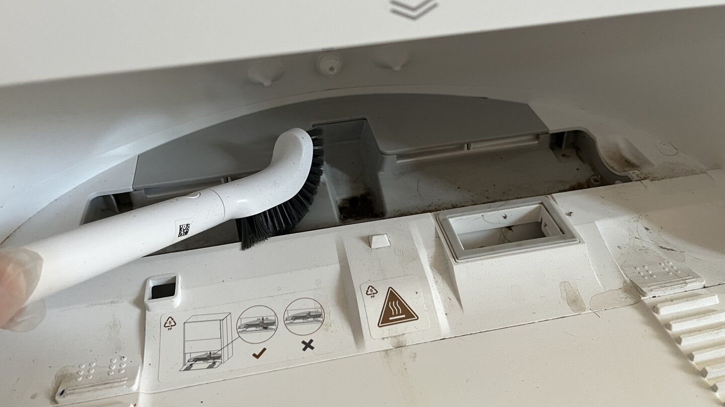 - Die beiliegende Bürste erleichtert die Reinigung vor allem bei der schlecht zu erreichenden Unterseite der Station enorm. Doch es gibt keine praktische Aufhängung an der Station.
