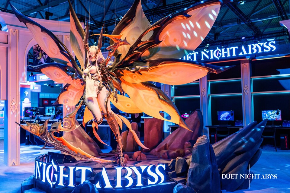 Registriert euch jetzt für Duet Night Abyss!Wie sah der Stand des Spiels aus? Das Herzstück des Stands war eine lebensgroße Skulptur des “The Eclosioner” aus dem Boss Fight. Darum herum gab es Anspielstationen, interaktive Events und coole Cosplayer.