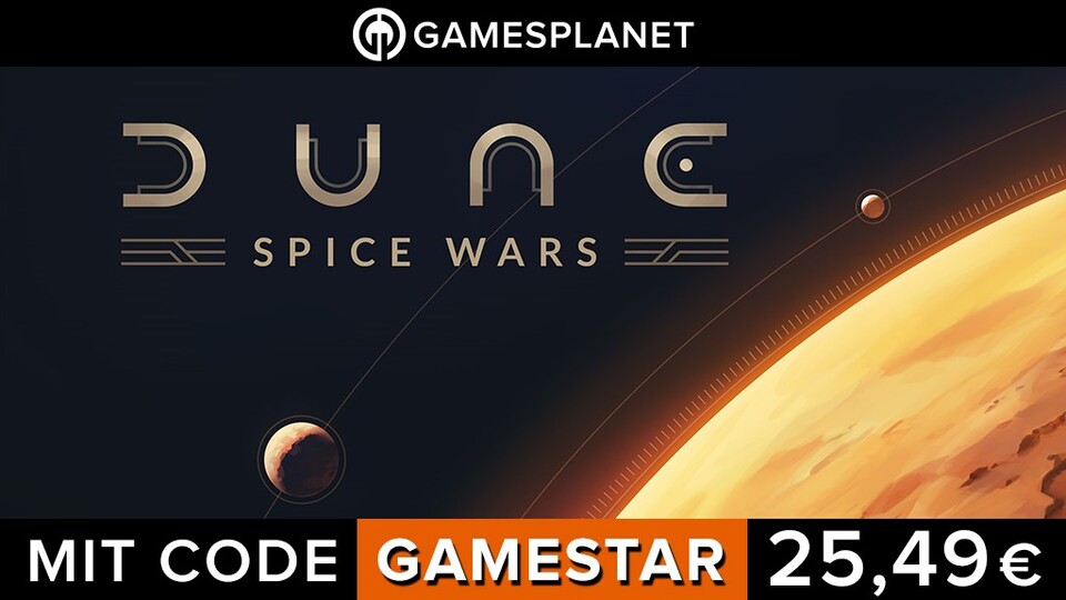 Dune räumte bei den Oscars ab, nun gibt es auch endlich ein Strategiespiel dazu! Mit Dune: Spice Wars soll an die ehrwürdigen Westwood-Zeiten von 1992 mit Dune 2 erinnert werden. Der Krieg um das Spice will euch so einiges abverlangen - und ist nun sogar schon etwas günstiger zu haben. Bei GamesPlanet bekommt ihr 10% Rabatt, mit unserem Code "GAMESTAR" zahlt ihr sogar nur 25,49 Euro. Worauf wartet ihr? Der Wüstenplanet ruft euch!