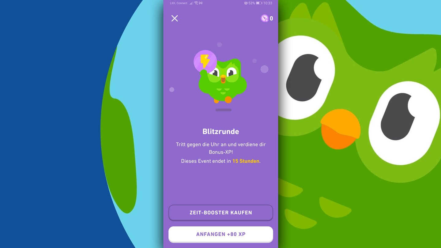Anfangs ging's tatsächlich vorrangig ums Lernen. Doch schon bald haben meine in fast 30 Jahren des Spielens an PC und Konsolen geschulten Min-Maxing-Instinkte übernommen und ich versuchte, das System möglichst effizient auszunutzen. Durch die Kombination aus XP-Boostern und Challenges unter Zeitdruck könnt ihr in Duolingo nämlich mit eineinhalb Minuten Lernen fast das Dreifache an Erfahrungspunkten herausschlagen, das es für eine reguläre Lektion mit XP-Booster gibt.