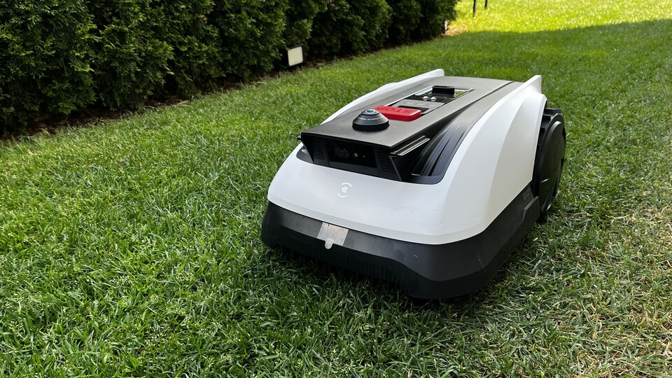 Das soll ihn besonders agil in komplexen Gärten mit vielen Bäumen und schattigen Ecken machen, wo andere schon mal die Orientierung verlieren. Außerdem hat er eine schlaue 3D-Kamera mit Künstlicher Intelligenz, um Hindernisse zu erkennen.