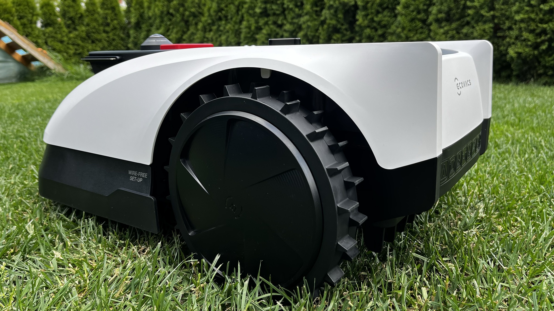 Manchmal, besonders bei feuchtem Boden, hinterließ der Roboter durch sein Radprofil leichte Spuren im Rasen. Das ist aber ein bekanntes Thema bei vielen Mährobotern und der Preis für gute Traktion, die ihm hilft, Steigungen bis zu 45 Prozent zu bewältigen.