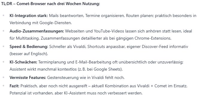 Ich gehe damit aber gerne einen Schritt weiter. Denn ich lasse mir selten etwas in herkömmlichen KI-Chats zusammenfassen.