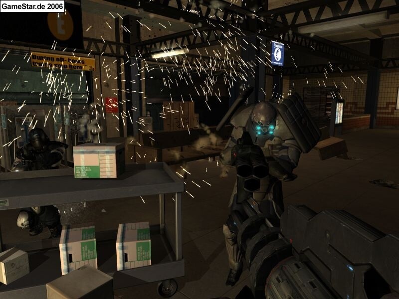 Wie erklärt man am besten die Handlung eines Addons, das sich direkt an die Geschichte des Hauptspiels anschließt, ohne dabei das Ende des Hauptspiels zu verraten? Ganz einfach: Am besten gar nicht. Nur so viel: Extraction Point macht da weiter, wo F.E.A.R. aufhört. Sie wissen schon, mit der Explosion und dem Dings und wo dann so... und so weiter. Im Addon treffen Sie natürlich auf neue Gegner: Als wir am Stand von Publisher Vivendi durch den ersten spielbaren Level von Extraction Point schleichen, huschen plötzlich zwei rote Punkte vor uns durch die Schatten -- die schimmernden Augen eines unsichtbaren Monsters. Aber unsere neue Minigun macht damit kurzen Prozess, etwa so kurz wie der Rest des Levels. Mehr gibt's vom F.E.A.R.-Addon derzeit nicht zu sehen, wirklich weltbewegende Neuerungen dürfen Sie in Extraction Point daher bislang nicht erwarten -- dafür aber gewohnt spannenden Horror.