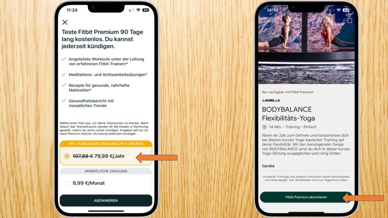 Fitbit Premium ist ein kostenpflichtiger Abonnementdienst, der zusätzliche Funktionen und Vorteile für Fitbit-Nutzer bietet. Ob und wie sich der Service lohnt, hängt von den individuellen Daten ab, die euch wichtig sind. Auch Zusatzangebote und -inhalte können interessant sein.