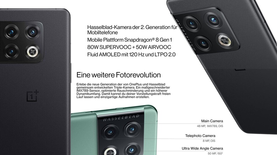 Ein Höhepunkt ist auch die neue Triple-Kamera. Ein maßgeschneiderter IMX789-Sensor sorgt für schnelleren Fokus und mehr Schärfe und die neue Farbkalibrierung des legendären Kameraherstellers Hasselblad bringt eure Bilder mit über einer Milliarde Farben und einer 10-Bit-Farbtiefe so richtig zum Strahlen. Der Ultrawide-Winkel beträgt gigantische 150 Grad.