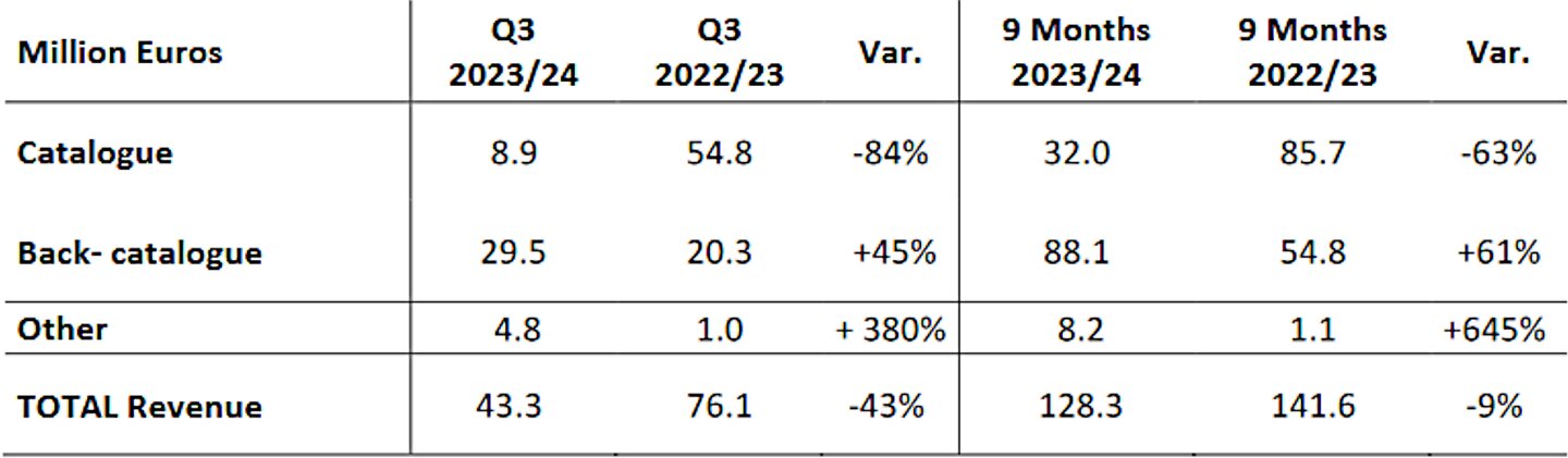 Gerettet werden die Zahlen jedoch vom Back-Katalog