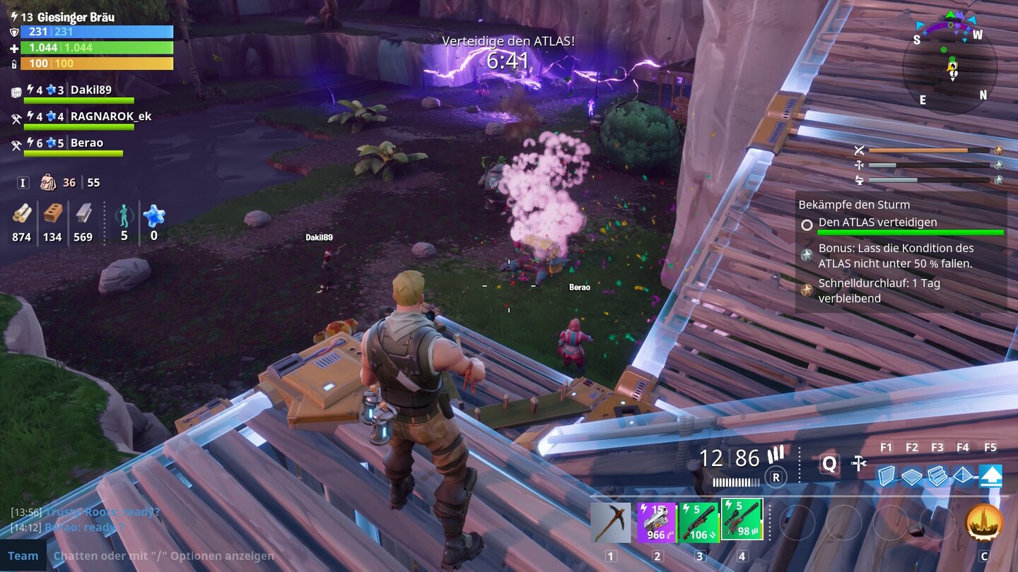 Das mag zwar jetzt eher negativ klingen, das Grinden macht aber in Fortnite vor allem mit Freunden wirklich Spaß. Das liegt zum einen daran, dass sich das Sammeln von Ressourcen nicht monoton anfühlt und das Bausystem die richtige Mischung aus Komplexität und Zugänglichkeit bietet.