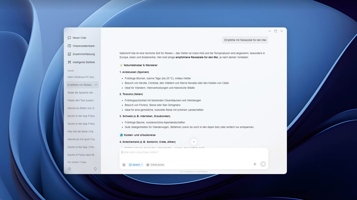 Der KI-Agent Ulyia ist nicht dafür da, Aufgaben in der Foto-App der NAS zu erledigen. Er lässt sich per Texteingabe auf verschiedene Weise so nutzen, wie wir das von ChatGPT & Co. kennen.
