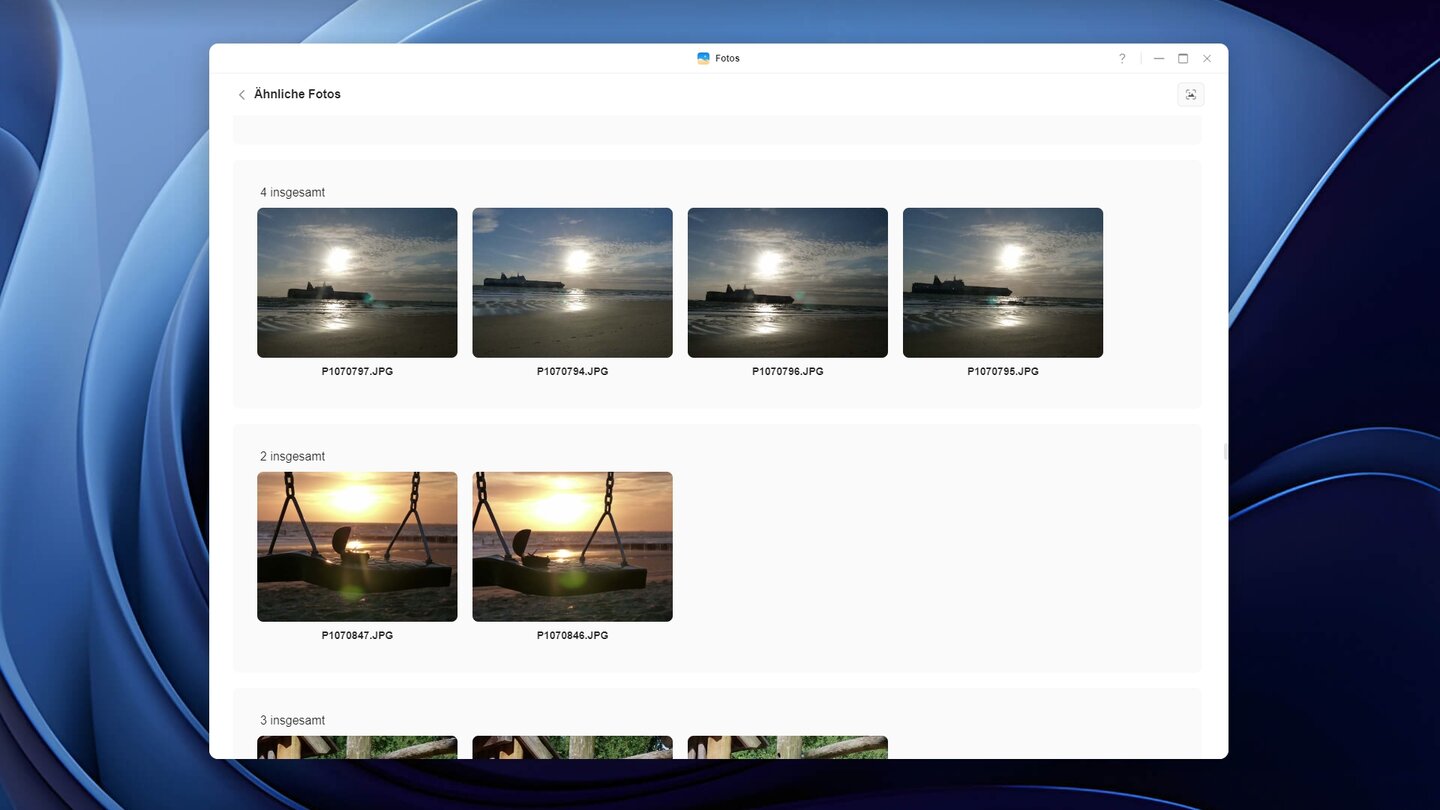 Auch ähnliche Bilder kann die NAS-Software entdecken. Das ist beispielsweise dann hilfreich, wenn man das gleiche Motiv bewusst mehrfach fotografiert hat, hinterher mehrere Optionen zur Wahl zu haben oder sich nicht über ein einzelnes unscharf gewordenes Bild zu ärgern.