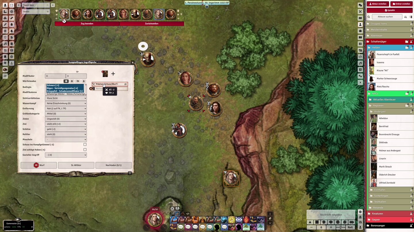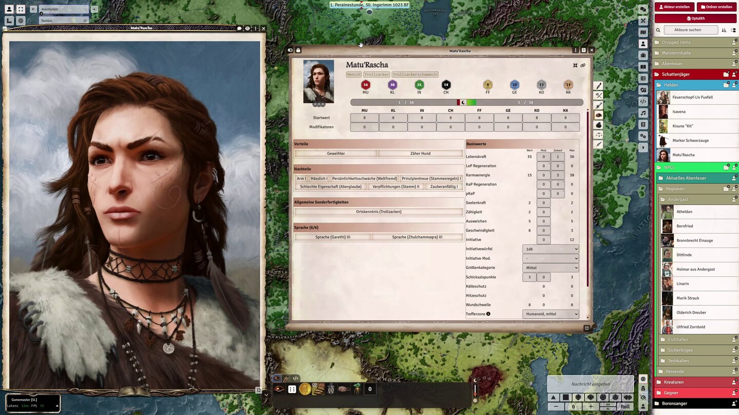 Ulisses hat wirklich eine vorbildliche Arbeit geleistet, um die ganzen Regeln von DSA 5 in Foundry funktional umzusetzen. Das Programm übernimmt also viel von dem, was mich andernfalls in die Verzweiflung treiben würde.