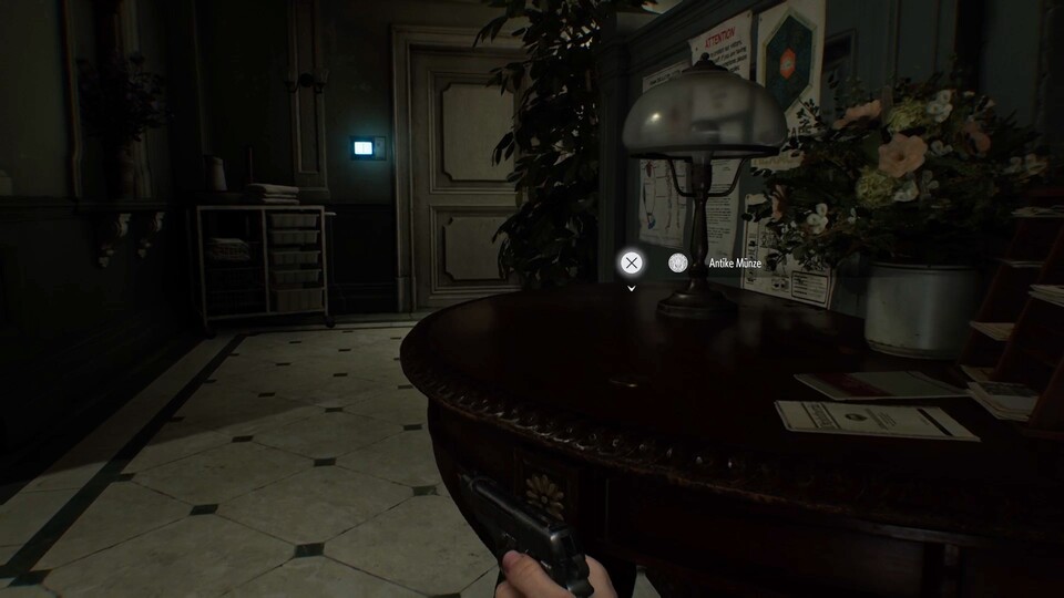 - Fundort: Geht in den Westflügel des Sanatoriums, durch die Küche, das Speisezimmer und vorbei an der Dokumentenverwahrung. Kurz bevor ihr in dem Flur nach links abbiegen müsst, befindet sich vor euch eine Kommode mit einer Lampe darauf. Völlig unbewacht liegt darauf eine Münze, die nur darauf wartet, von euch eingesammelt zu werden.