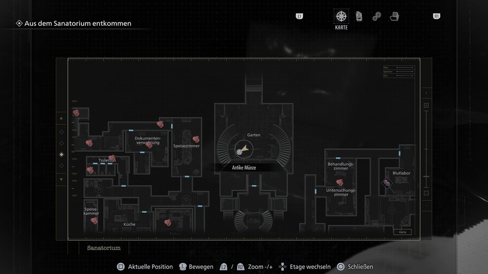 Insgesamt benötigt ihr also 17 Antike Münzen, um an alle vier Items in den Schränken zu gelangen. Im Sanatorium lässt sich allerdings etwas mehr Kleingeld finden, weshalb ihr euch entscheiden könnt, wo ihr euch die Münzen mopst. Einige davon sind einfacher zu bekommen, für andere müsst ihr zum Beispiel bestimmte Gegner besiegen.