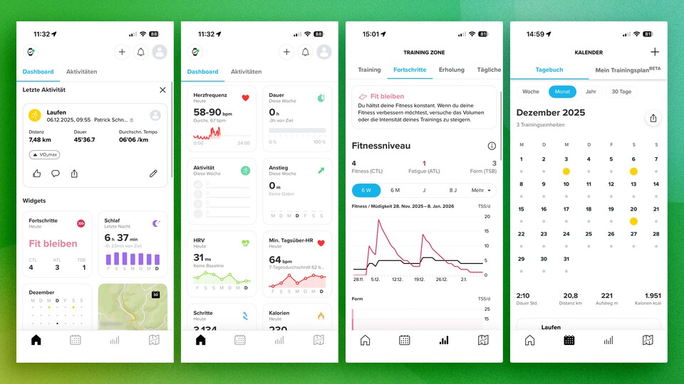 Die Akkulaufzeit beider Smartwatches begeistert. Suunto bescheinigt der Vertical 2 eine Laufzeit von 20 Tagen bei moderater Nutzung. Im Test schaffte die Uhr 18 Tage mit Schlaftracking und insgesamt sieben Workouts.