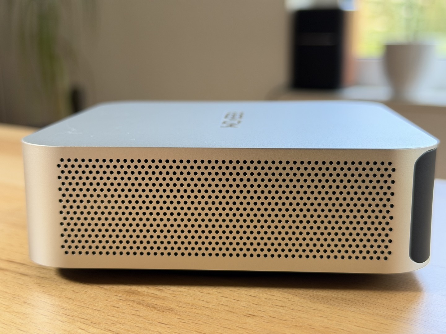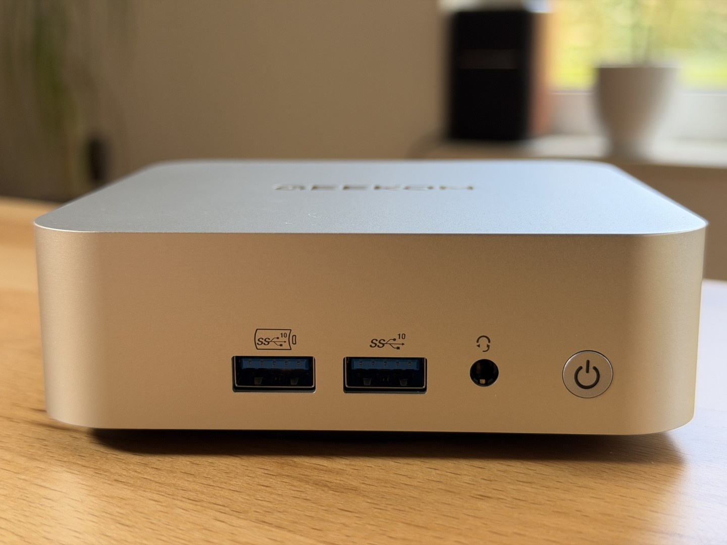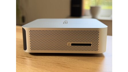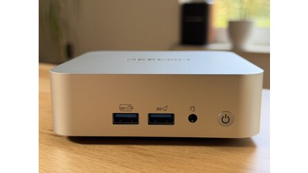 Der A5 Pro sieht aus wie ein Mac Mini. Das Gehäuse besteht ebenfalls aus solidem Aluminium, aber es gibt relevante Unterschiede. So lässt sich der Geekom Mini-PC bequem über einen an der Front angebrachten Taster einschalten, während man den Apple Rechner anheben muss, um an den unten angebrachten Power-Knopf zu gelangen.