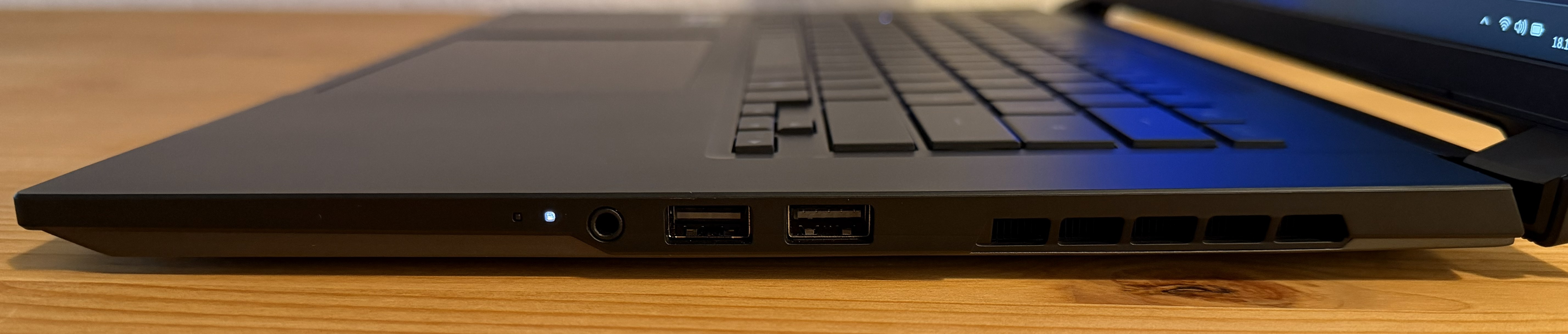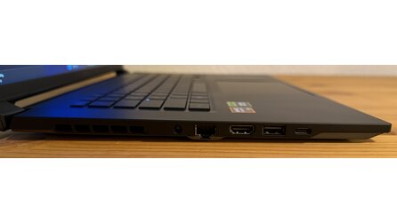 Mit seinem 76-Wh-Akku erreicht das Aero X16 durchaus solide Werte. Knapp 1,5 Stunden hält das Gerät im Gaming-Test des PC-Mark durch, das durchschnittlich.