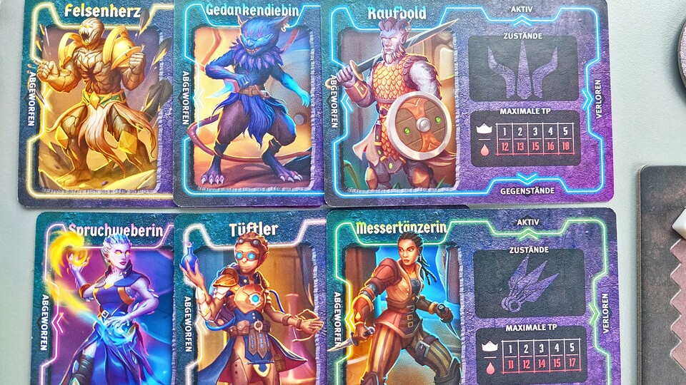 Wie gewohnt wählt man pro Zug zwei Karten aus, von denen man je einmal die obere und einmal die untere Fähigkeit nutzt. So weit, so gut, aber man verliert deutlich schneller seine Karten, denn man hat immer nur vier Karten auf der Hand. Diese sind zwar beidseitig – man dreht die Karte nach dem Einsetzen um und kann eine neue Fähigkeit auf der Rückseite verwenden – aber man verliert bei jeder Rast dementsprechend auch zwei Fähigkeitskarten, wodurch man doppelt so schnell erschöpft ist, was die Kämpfe deutlich rasanter macht.