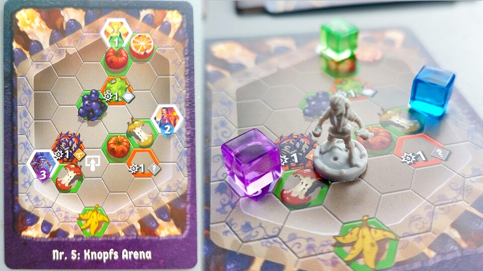 Ist es das Aufkleben der neuen Orte auf der Karte? Ist es der wachsende Wohlstand von Gloomhaven? Nein, das Rückgrat von Gloomhaven ist der Kampf und das Management seiner Karten. Wie schon erwähnt sind die Kämpfe in Knöpfe & Krabbler deutlich kürzer, was aber nicht heißt, dass sie einfach sind.