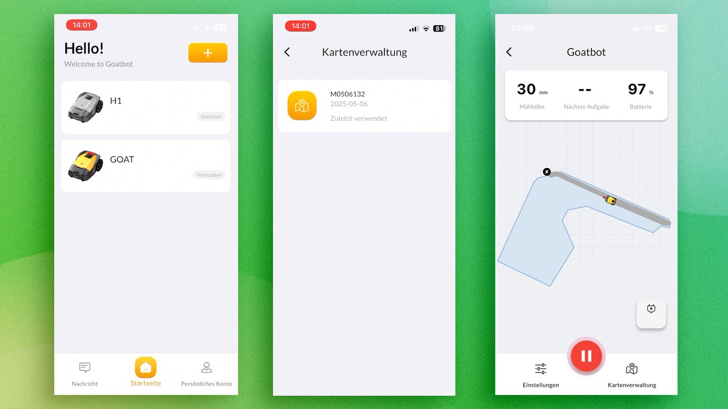 Das Wichtigste funktioniert zwar, doch die Konkurrenz in Form von Dreame und Ecovacs ist hier meilenweit voraus: Kantenmähen, Fernsteuerung, Nachtmodus (für Igelschutz), Feinjustierung der Hinderniserkennung – all das gibts beim Goat Bot (noch) nicht. Hier gibt es viel Potenzial aufzuholen, doch ob diese Features jemals kommen, ist unklar.