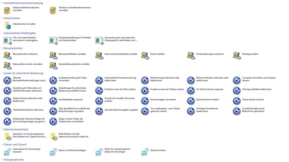 Wenn ihr den Ordner per Doppelklick öffnet, seht ihr über den Explorer von Windows Verknüpfungen zu verschiedenen Einstellungen.