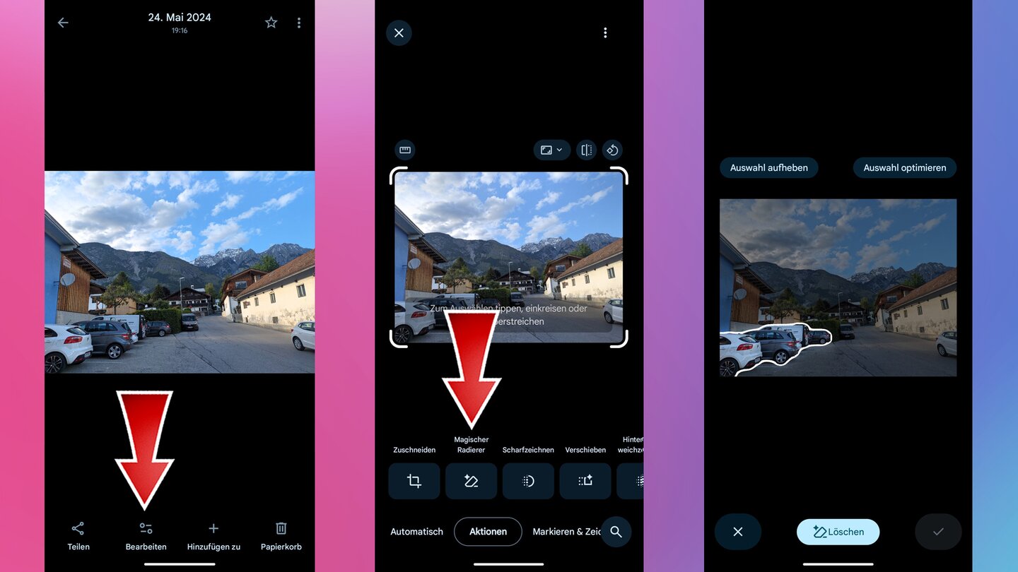 Mit dem magischen Radierer könnt ihr störende Objekte in Fotos entfernen. Der Klassiker sind hier natürlich andere Touristen an berühmten Sehenswürdigkeiten.