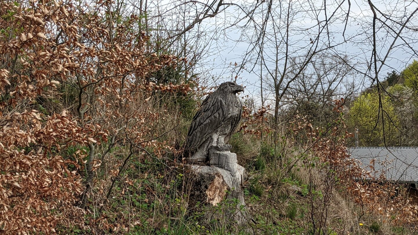 Bei meinem Aufstieg begegnete ich auch noch einem hölzernen Adler und in der Nähe des Stargates wacht eine Eule.