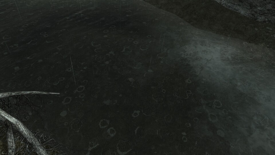 Passend zu den realistischen Wassertexturen kommt hier die Mod für realitischeres Wasser bei Regen, ebenfalls von »isoku«. Zwar ersetzt die Modifikation bloß die Textur für Regentropfen, die auf Wasser einschlagen. Der Effekt kann sich aber wirklich sehen lassen, wird aber erst in Bewegung wirklich offensichtlich. Wasserflächen wirken bei Niederschlag plötzlich viel glaubwürdiger. Wer den Effekt testen will: Öffnen Sie die Konsole mit ^. Wenn Sie jetzt » sw c8220« eingeben, fängt es an zu regnen.