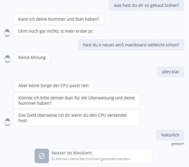 Interessant ist auch der Grund für den Verkauf, gerade wenn die angebotene GPU erst eine Hardware-Generation alt ist. Wenn ihr das auch noch sprachlich sauber verpacken könnt, ist der erste Schritt getan, um euch zumindest von einem Google-Übersetzer nutzenden Scammer abzusetzen.