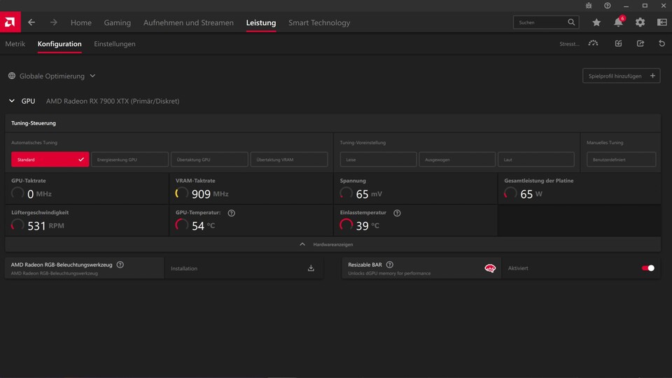 Alternativ könnt ihr auch die Treibersoftware nutzen. Bei AMD beispielsweise seht ihr Temperaturen, Leistungsaufnahme und andere Werte in der Adrenalin-Software (im zweiten Bild oben zu sehen). Dazu müsst ihr lediglich auf den Reiter Leistung