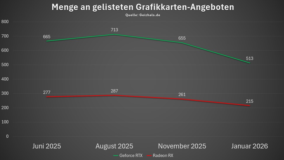 Erschwerend hinzu kommen weitere Faktoren wie Aussagen zu der generellen Produktionskapazität von Speicher für das Jahr 2026 sowie die immer schlechter werdende Lieferbarkeit von Gaming-Grafikkarten.