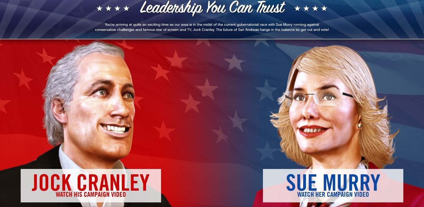 Spielentwickler Rockstar Games erweist sich regelmäßig als äußerst detailverliebt, was die Gestaltung einer atmosphärischen Spielwelt für die jeweils neuen Ableger seiner Open-World-Actionspielreihe Grand Theft Auto angeht. Fans dürften sich unter anderem an die teilweise recht abstrusen Video-Botschaften der Sekte Epsilon Cult of America erinnern. Der neueste lustige Auswuchs dieser Art hinsichtlich Grand Theft Auto 5 ist nun eine Wahlwerbekampagne zweier Kandidaten für den Gouverneurs-Posten.