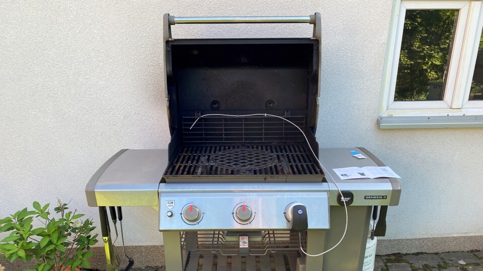 Den Garraumfühler steckt ihr am smarten Griff an und befestigt ihn ebenfalls mittels Magnet wahlweise am Deckel oder, wie ich, am Metallrost.