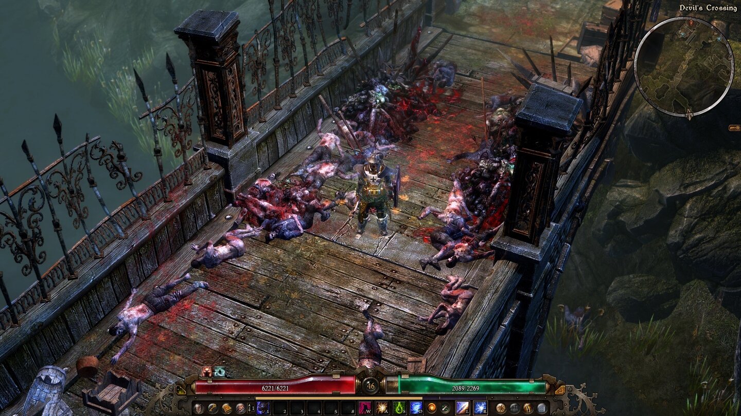 Kurz: Grim Dawn spielt sich einfach rund. Bugs sind uns zwar auch begegnet, angesichts der Größe und Komplexität des Spiels aber in absolut vertretbarer Menge. Einmal erschlugen wir einen Boss unter einer Brücke und seine Beute landete oben auf der Brücke. Ein anderes Mal wurde ein episches Amulett partout nicht angelegt, obwohl wir die Voraussetzungen erfüllten. Und hier und da blieben Monster in Felsen stecken, so dass wir sie gefahrlos aus der Distanz erledigen konnte.